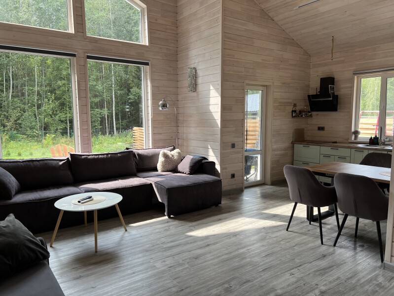 Загородный дом с панорамными окнами на лес, вторым светом и финской сауной недалеко от г. Выборга - это место спокойствия и вдохновения, куда можно уйти от суеты городской жизни и насладиться красотой природы. Идеальное расположение дома у леса позволяет наслаждаться уединением и гармонией, пробуждаясь под пение птиц и шум листвы. Дом с террасой, оснащённой уличной мебелью и мангалом. Так же доме есть финская сауна (оплачивается отдельно). Дом полностью оснащен для комфортного проживания: ⁃ Оборудованная кухня (холодильник, индукционная варочная панель, печь СВЧ, чайник, набор сервировочной посуды,посуда для приготовления пищи). ⁃Финская сауна (платно - 3000 руб.) - выход на террасу ⁃ 4 основных спальных места+ 2 дивана в гостиной (доп.место 1000 руб.): ▪️2 спальни с 2-х спальными кроватями (160*200) ▪️ 2 раскладных диван на кухне/гостиной Постельное белье и полотенца. ⁃wi-fi, телевизор в гостиной ‼️ Страховой депозит 5000 Р вносится при заселении, возврат депозита после уборки и осмотра всего дома ! ‼️! В доме запрещено курение сигарет (в том числе кальяна, вейпа, электронных сигарет и пр.) и разведение открытого огня (свечи, бенгальские огни и пр.) ▫️Заезд с 16:00 ▫️ Выезд до 13:00 ▫️ Возможен поздний выезд или ранний заезд - обсуждается индивидуально Проживание с домашними питомцами по запросу (стоимость 1000)